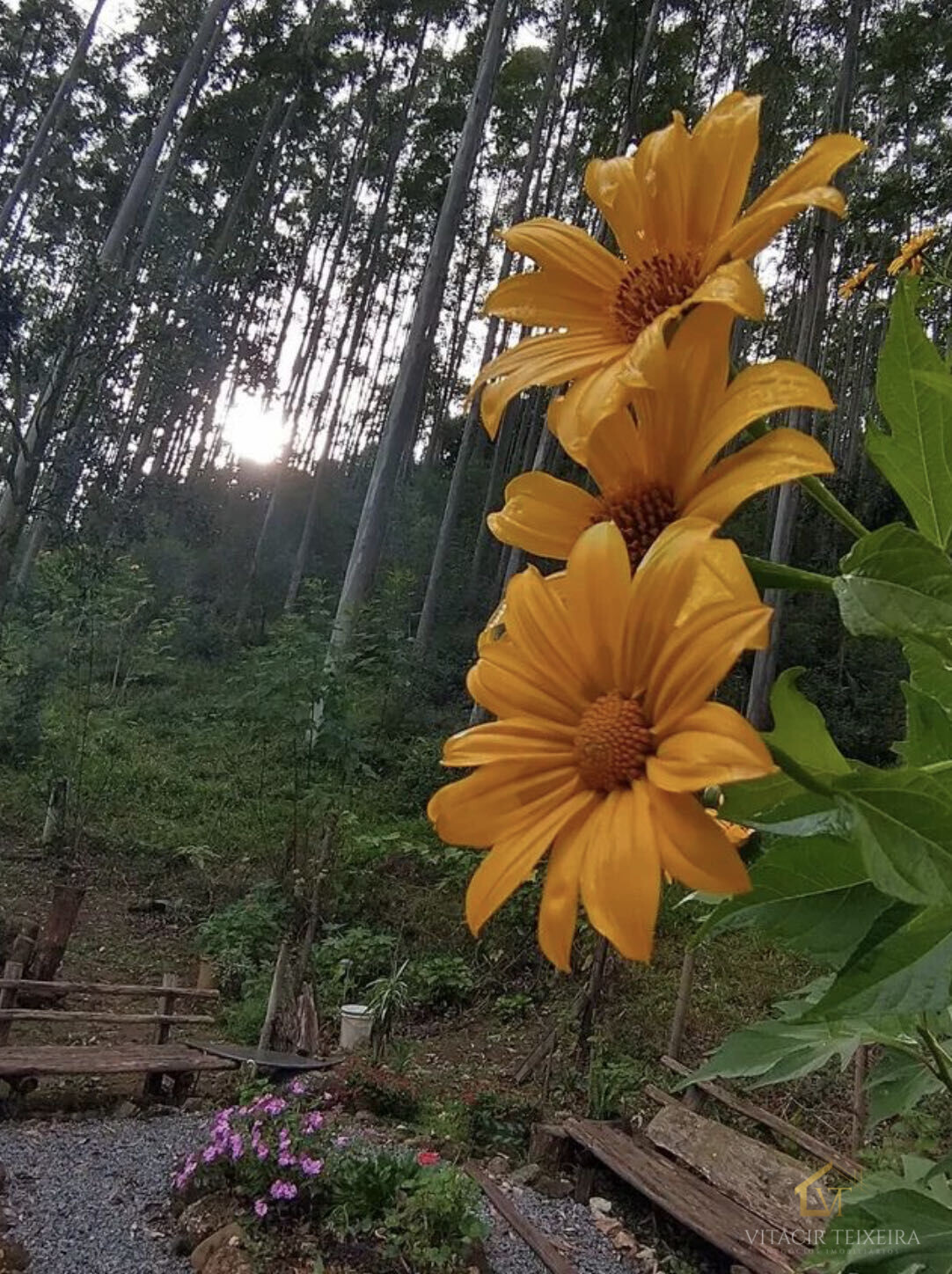 A propriedade é totalmente coberta de mata, sendo 8 hectares de reflorestamento de eucaliptos de 14 anos, com ótimo valor venal.